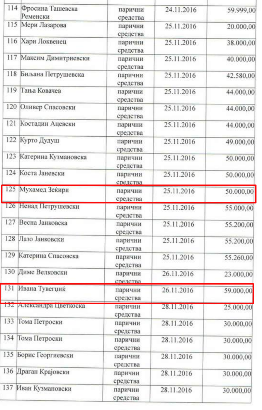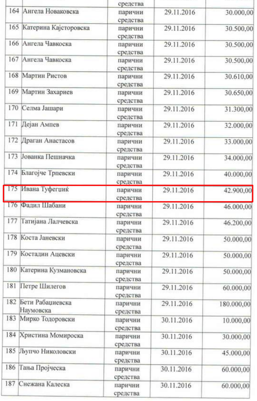 Така Ивана Туфегџиќ, која се истакна во насилните протести, а која е невработена, на 26 ноември донира 59.000 денари, а три дена подоцна на 29. донира уште 42.900 денари на сметката на СДСМ.