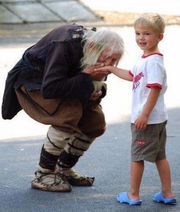 На сите кои ќе му остават париче, им ги бакнува дланките и ги убедува дека направиле добро дело – тие дале за Бог, а тој се грижи за сите нас и ќе ни помогне.