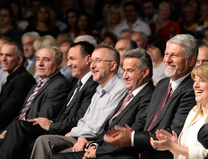 Во првиот ред седеа  професорите Томе Груевски и Зоран Костов, кој е шеф на американскиот проект Хабитат и експретседателот на Македонскиот центар за меѓународна соработка, Сашо Клековски.