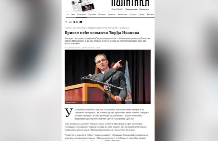Тој, во изјава за српскиот весник „Политика“, потенцира дека во актуелната политичка криза со која се соочува Македонија, многу е важно да не се дозволи реализација на тиранската платформа.