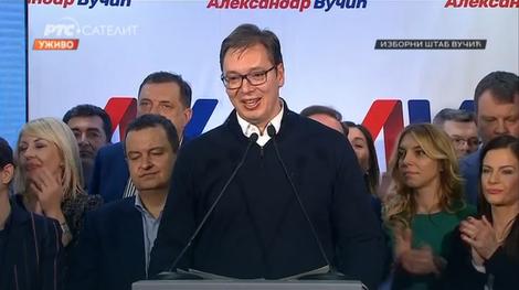 Јас сум многу горд на фактот дека ние добиvme огромна доверба од граѓаните на Србија и oд 3.700.000 излезени гласачи за нас се околу 2.035.000 гласови, вели лидерот на СНС, Александар Вучиќ, на првиот говор по објавувањето на првите резултати од изборите.