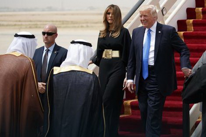 Првата дама на САД, Меланија Трамп, допатувала со црни пантолони со златен појас, но не ја покрила главата според прописите за странските службеници кои доаѓаат во Саудиска Арабија. Традицијата до која се придржуваат повеќето гости од Западот неодамна ја прекршила и германската канцеларка Ангела Меркел, кога во текот на посетата на саудискиот крал се појавила без хиџаб и во пантолони.