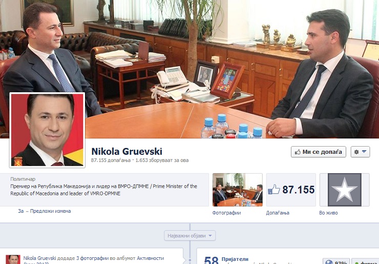Премиерот Никола Груевски поставил фотографија од средбата што денес ја имаше со Зоран Заев на насловната страница на својот профил на „Фејсбук“.