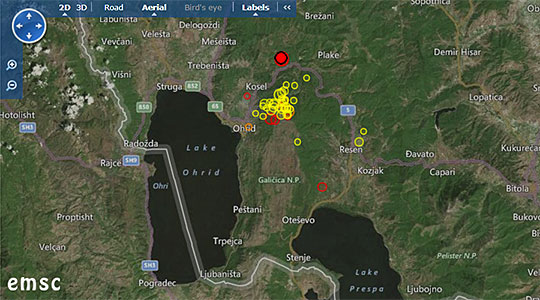 Од 18-ти минатиот месец до денеска во охридскиот регион се регистрирани над 1.000 земјотреси. Најсилниот беше вчера во 13:18 часот со магнитуда од 5 степени според Рихтеровата скала, предизвика вознемиреност кај жителите и туристите, а пријавени се и помали материјални штети.