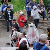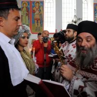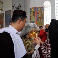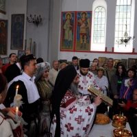 Во склоп на традиционалните свадбени галички обичаи, Архимандритот Партениј го изврши и свештениот чин на светата тајна брак, упатувајќи им на младенците топли татковски поуки: