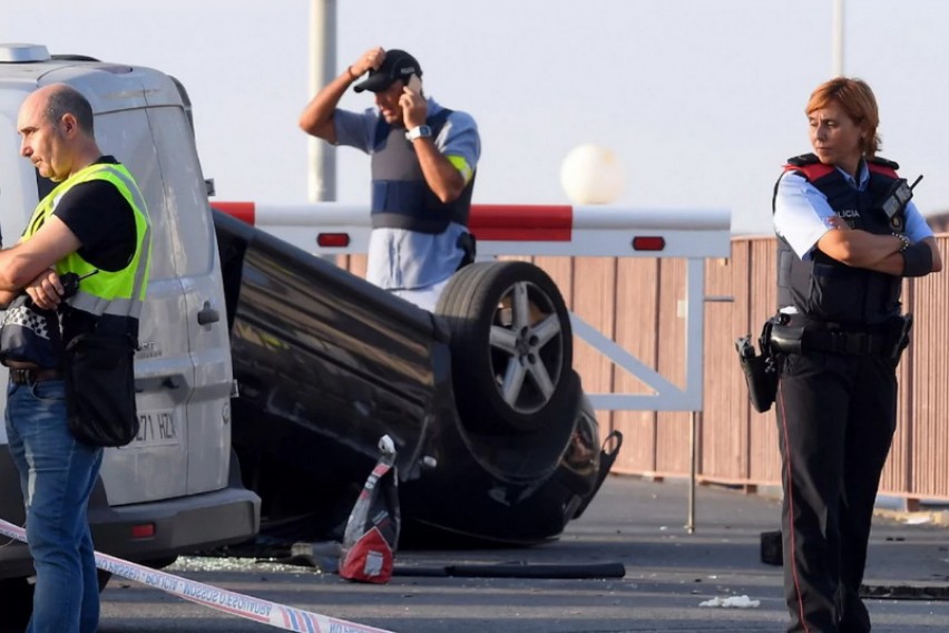 Според пишувањето на каталонските медиуми, патролната пешачка полиција се наоѓала на контролниот пункт кога терористите налетале со автомобил, прегазиле три лица и се удриле во едната од двете полицајќи на патрола.