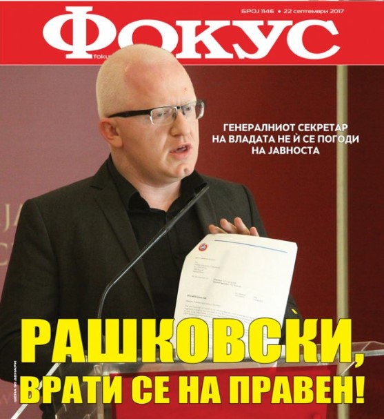 „Фокус“ на својата насловна страна му порачува на Рашковски да се врател на правен и дека владиниот генерален секретар „не и се погодил на јавноста“.