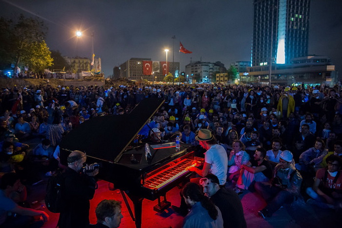 Имено, млад германски пијанист го донел својот клавир на истанбулскиот плоштад „Таксим“ и токму таму, во центарот на демонстрациите, одржал неколкучасовен концерт, со кој успеал да ја промени атмосферата од напнатост во славење.