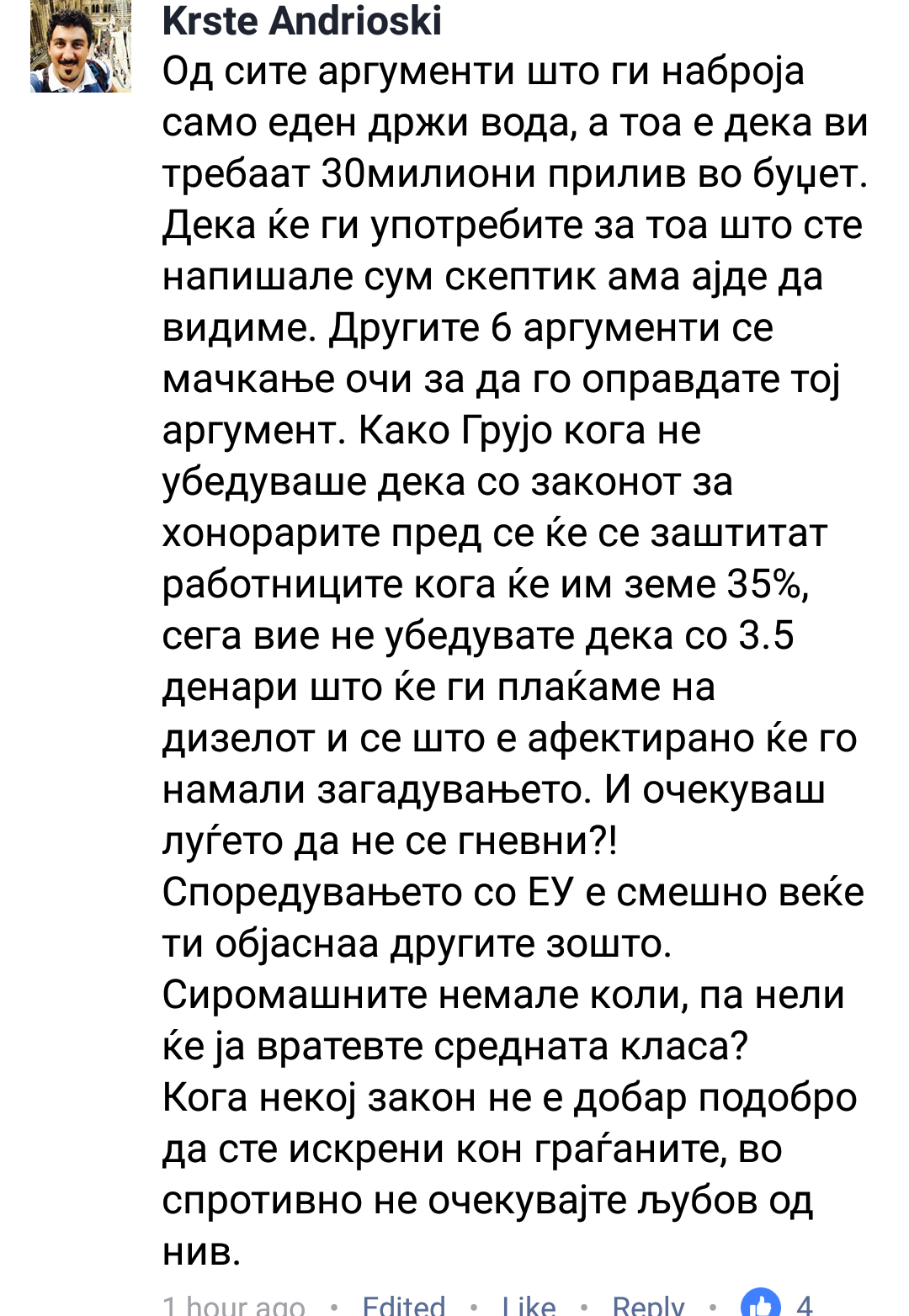 Од синоќа не стивнуваат реакциите на граѓаните, кои со жалење констатираат дека Владата не сака да им помогне на граѓаните, особено на сиромашните, туку сака да го полни буџетот лажејќи ги луѓето дека обезбедува низа поволности за подобрување на нивниот живот.