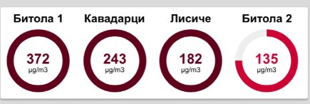 Најзагадено е во текот на вечерните часови. Наместо дозволените 50 микрограми на еден метар кубен, граѓаните на Битола дишат 7 пати повеќе суспендирани штетни честици на кубен метар. Граѓаните на Кавадарци дишат 4 пати повеќе од дозволените суспендирани штетни честици на кубен метар. Граѓаните на Лисиче пак дишат повеќе од 130 микрограми на кубен метар на суспендирани честици, од дозволеното ниво.