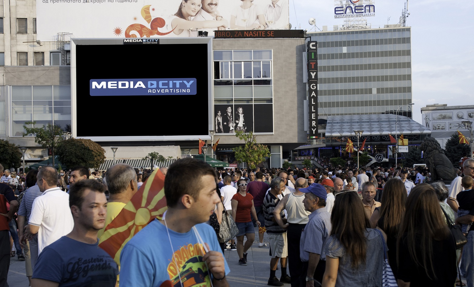 – Целта на настанот е да се забавуваме – велат од „Медиа Сити“ додавајќи – На сите ни треба малку релаксација и забава, и по можност да побегнеме накратко од здодевното секојдневие. Втората цел, е секако да се испромовира медиумот кој го имаме. За жал, како да забораваме дека го имаме. Ова е медиум кој по сите критеруми е супериорен во категоријата outdoor огласување, по големина е најголем во Југоисточна Европа – дури 120м2, звучно е опремен и нуди исклучително квалитетна слика. Но, во последно време, некако се навикнавме на се што е мега, големо, импозантно, па карактеристиките на дисплејот ни доаѓаат како нормални. Забораваме да го цениме она што секаде во светот претставува тренд во современиот адвертајзинг.