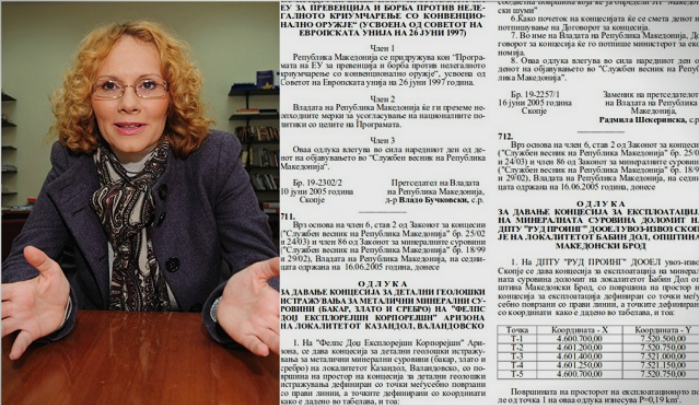Одлуката за давање концесија за детални геолошки истражувања на локалитетот Казандол е потпишана на 16 јуни 2005 година од страна на Радмила Шеќеринска, тогашната заменичка на претседателот на Владата на Република Македонија. Истата е објавена во 48 број на Службен весник на 23 јуни 2005 година.