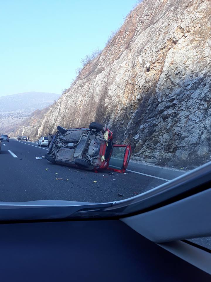 Пред еден час се случила страшна сообраќајка кај Карпалак. Возило е превртено на кров, а засега не се знае како изгубило контрола и што точно се случило.
