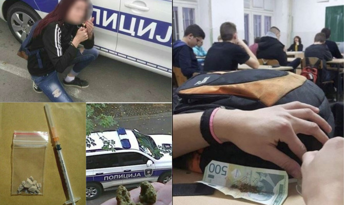 На фотографиите се гледа како “ролаат” на сред училница, палат џоинт покрај полициско возило, а на некои се фалат со поголеми количини на дрога и големи износи на динари и евра.