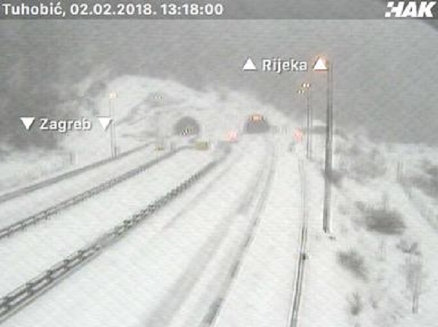 На автопатот кон Загреб поради снег се вози отежнато, по една лента. ХАК предупредува дека патиштата се влажни и лизгави поради дождовите во Истра, северно Приморје, Лика и Далмација, додека во Горски Котар, средишна и северозападна Хрватска паѓа снежна виулица.