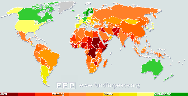„Фонд за мир“ (Fond for peace) го објави деветтиот годишен индекс на неуспешни држави за 2013 година, според кој првите места на најнестабилни земји во светот ги држат Сомалија, Демократска Република Конго, Судан и Јужен Судан.