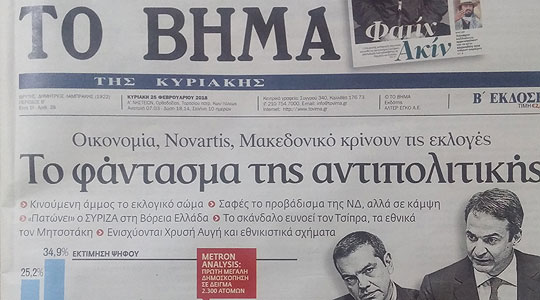 – Владата се чини дека губи поради македонското прашање, додека пак опозицијата губи поради скандалот „Новартис“, а двата случаи се еден наспроти друг, можеби затоа што и двете прашања се уште се во тек и тешко може да се одреди како ќе завршат, пишува Стратос Фанарас, претседателот на агенцијата „Метрон Анализис.