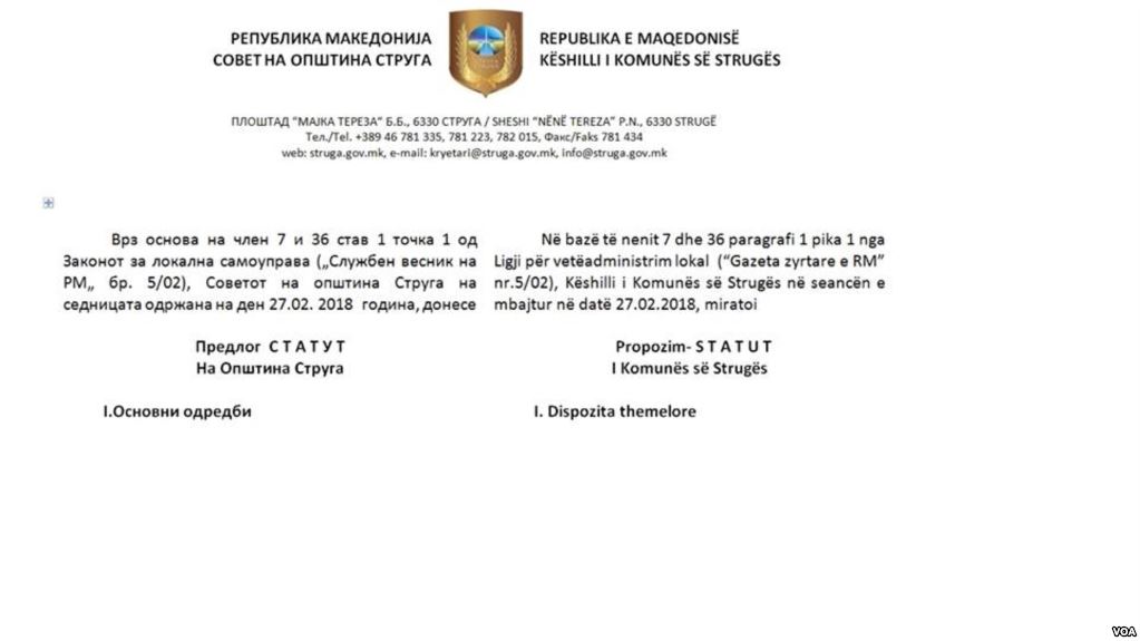 Албанскиот јазик и официјално покрај македонскиот ќе биде впишан како службен јазик во општина Струга. Тоа стои во новиот статут на општината кој денеска го изгласаа градските советници, пишува VOA.