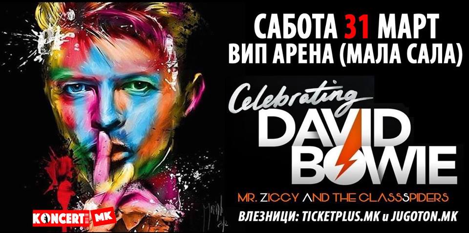 Kонцертот на Mr. Ziggy And The GlassSpiders, трибјут бендот за легендарниот (David Bowie) ќе се одржи на 31 март, сабота, во малата сала на ВИП Арената – Борис Трајковски.