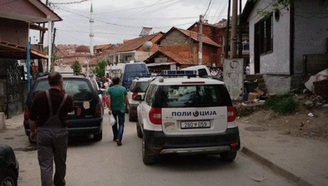 Три полициски автомобили, едно комбе и десетина полицајци попладнево по 15 часот интервенираа во Турското маало во Струмица.