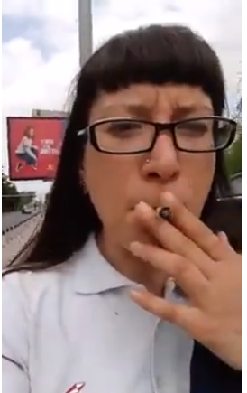 Пушам џоинт на јавно место, девојка од Скопје си запали еден ‘фиш’ и си пуши на улица во Скопје.