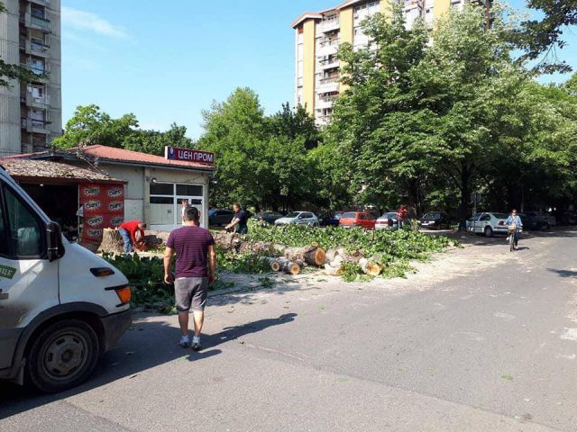 „Во Општина Карпош, по барање на граѓани од околните згради, а по налог на Град Скопје, ЈП „Паркови и зеленило“ исече две тополи. Ова е сторено по претходно утврдени испитувања за состојбата на двете дрва“, се вели во соопштението на Општина Карпош. Оттаму велат дека на постоечката локација не е предвидена изведба на каква било инфраструктура или градежни активности.