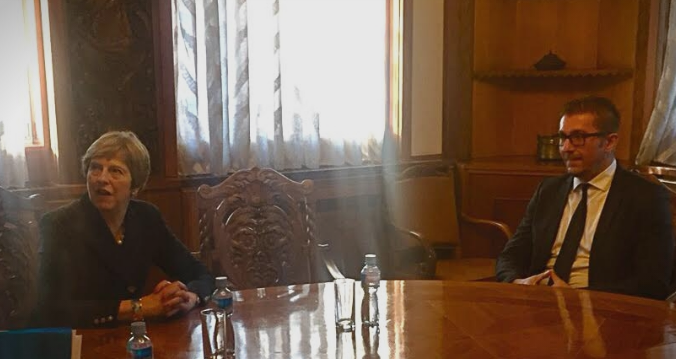 Претседателот на ВМРО-ДПМНЕ, Христијан Мицкоски денеска оствари средба со британската премиерка Тереза Меј.