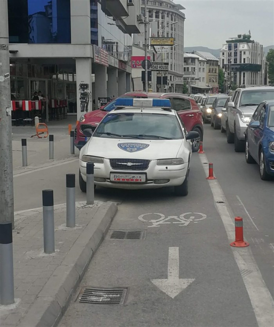 Добро што ставија столбчињаа меѓу коловозот и велосипедската патека, па сега не може секој да паркира. А и полиција има, гледа, казнува…. Или не…?