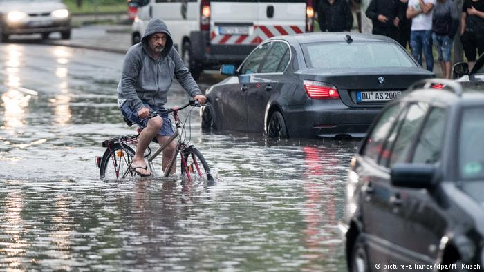 Обилни врнежи од дожд во делови од Германија предизвикаа поплавени улици и објекти. Штети предизвика и силниот ветар. Посебно беше погодена покраината Северна Рајна Вестфалија.