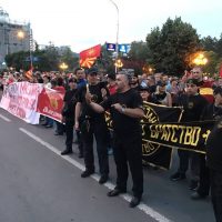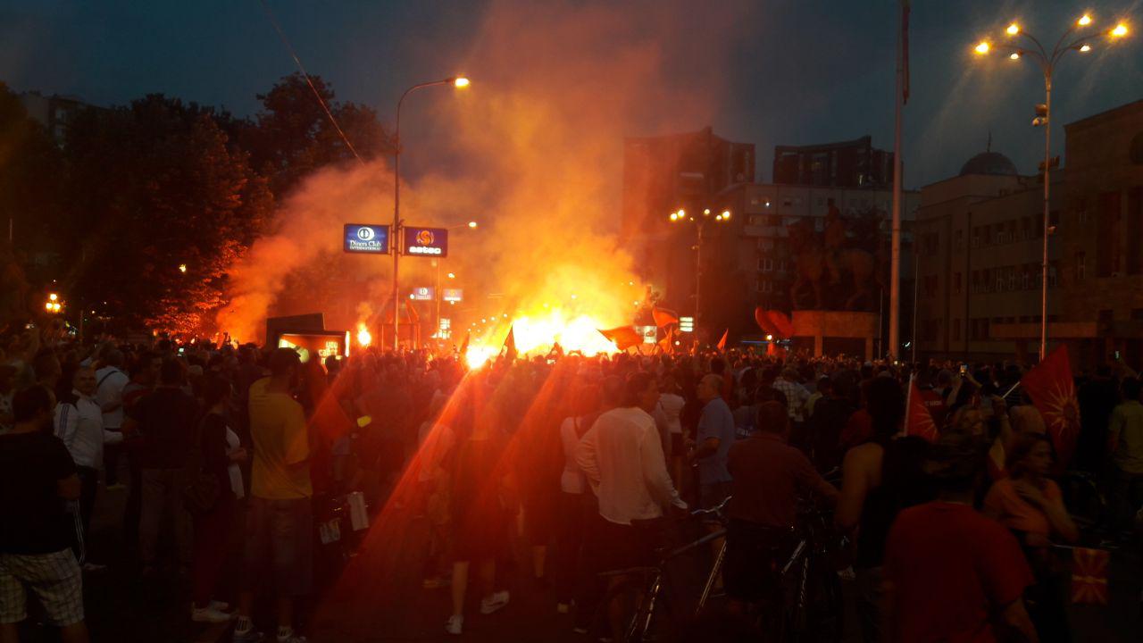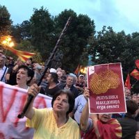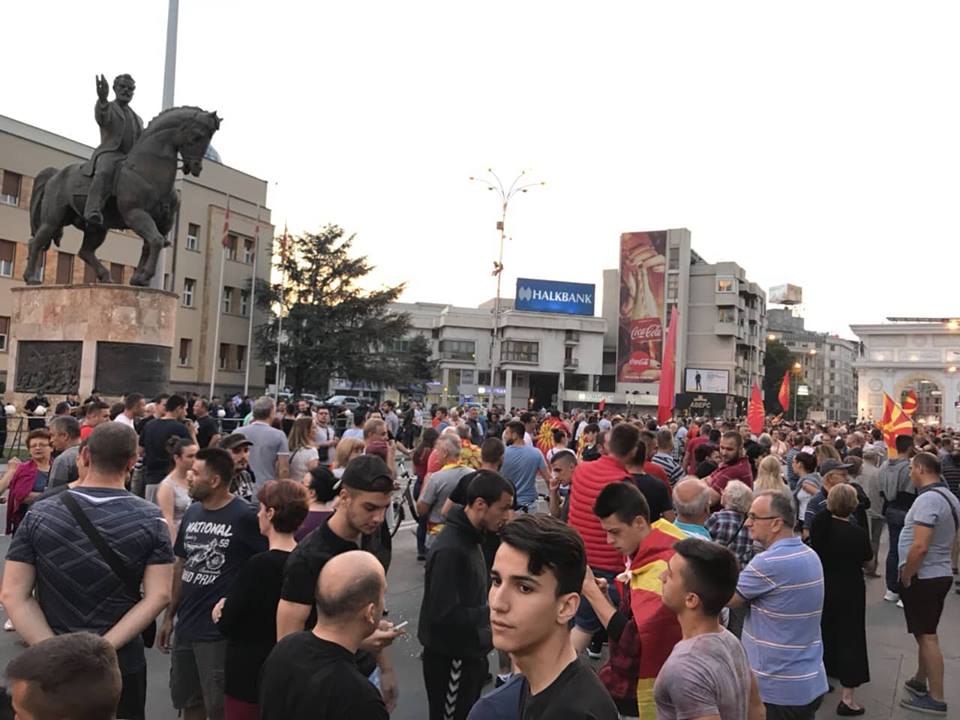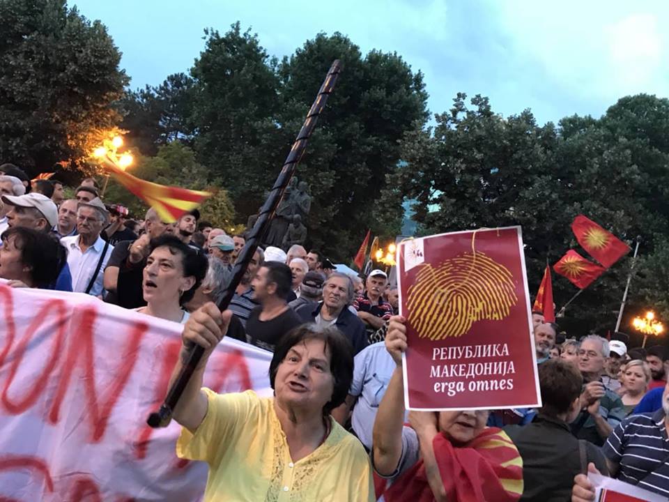 Стотици граѓани предводени од навивачката група Комити излегоа денеска на протест против промена на името. Тие му порачаа на Заев дека името не е на продавање. Пред Собранието на Република Македонија со транспаренти и знамиња и со родољубни песни граѓани ја бранат историјата на нашата држвата.