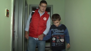 -За поздрав е кога имаме ваков волонтер кој двапати дневно го зема детето и го носи во училиште.“ – изјави Марина Матеска од Црвен крст – Скопје.