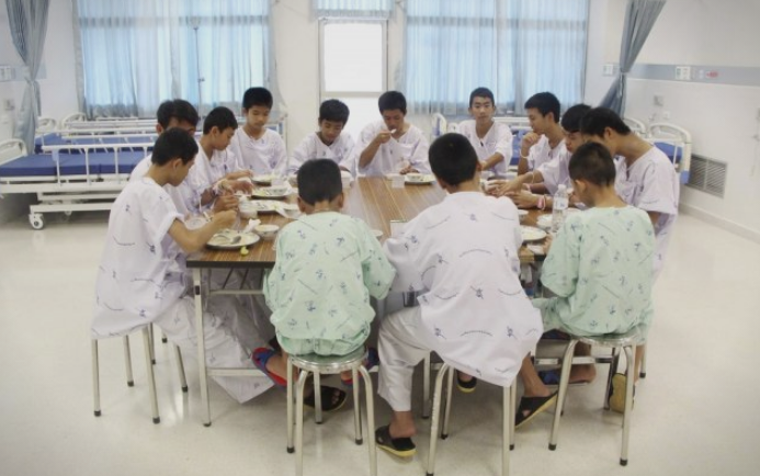 Тие во болницата беа во карантин, откако беа извлечени од пештера во северот на Тајланд по повеќедневната спасувачка акција.
