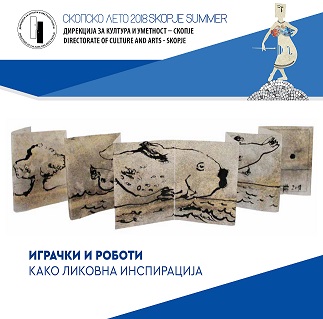 Друштвото на ликовни уметници на Македонија во рамките на програмата на Скопско културно лето и во соработка со НЛБ Банка имаат чест да ве поканат на отварањето на изложбата „ Играчки и роботи како ликовна инспирајица “ која што ќе се одржи на 20 јули (петок) 2018 година во Галеријата на НЛБ Банка во Скопје со почеток во 20:30 часот.