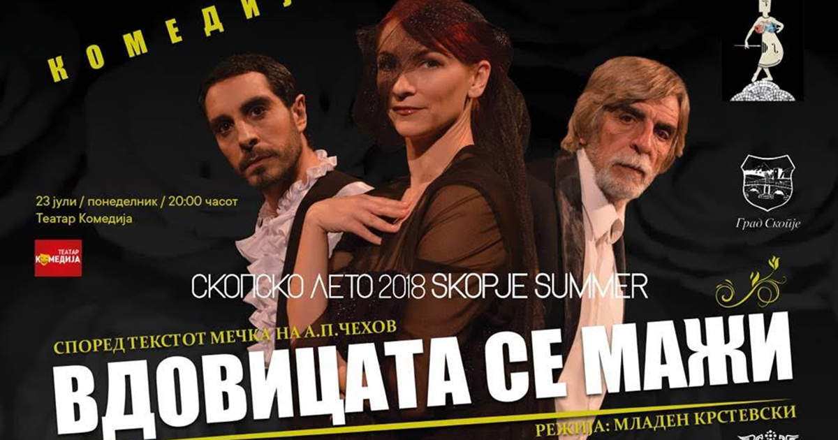 Во рамките на „Скопско лето“вечерва ќе се одигра театарската претстава „Вдовицата се мажи“, според „Мечка“ од А.П.Чехов, во Театар „Комедија“ со почеток во 20 часот.