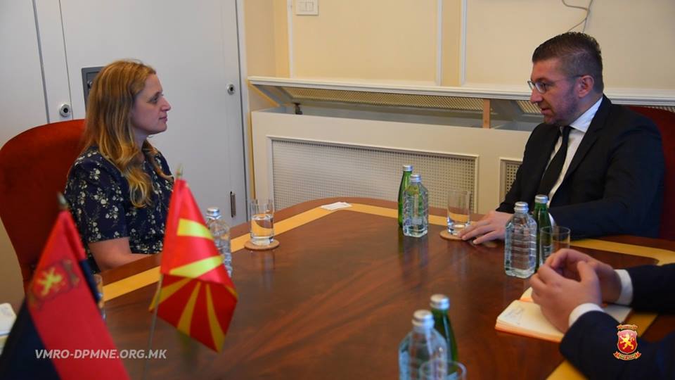 Мицкоски на средба со амбасадорката Галовеј: Ѝ образложив дека соочуваме со неодговорна и непринципиелна политика од страна на власта