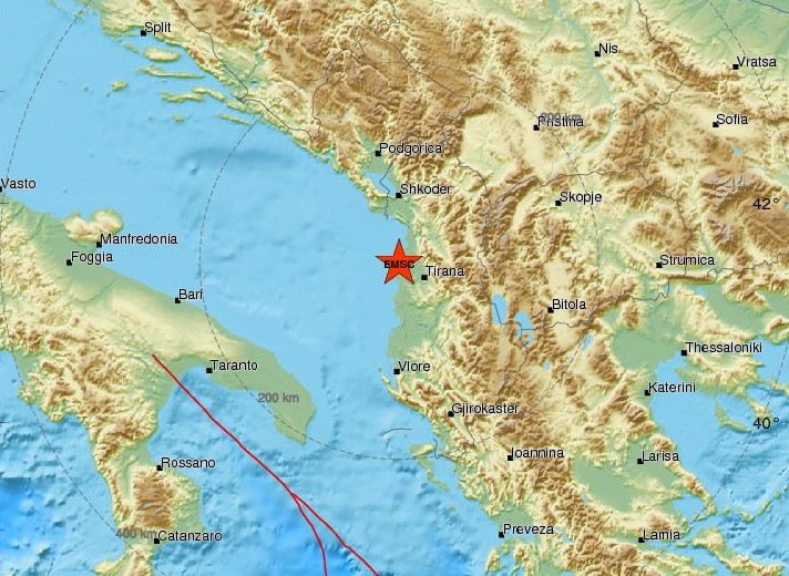 Земјотрес со јачина од 5,1 степен, попладнево ја потресе Албанија, а истиот беше почувстуван и во Скопје.