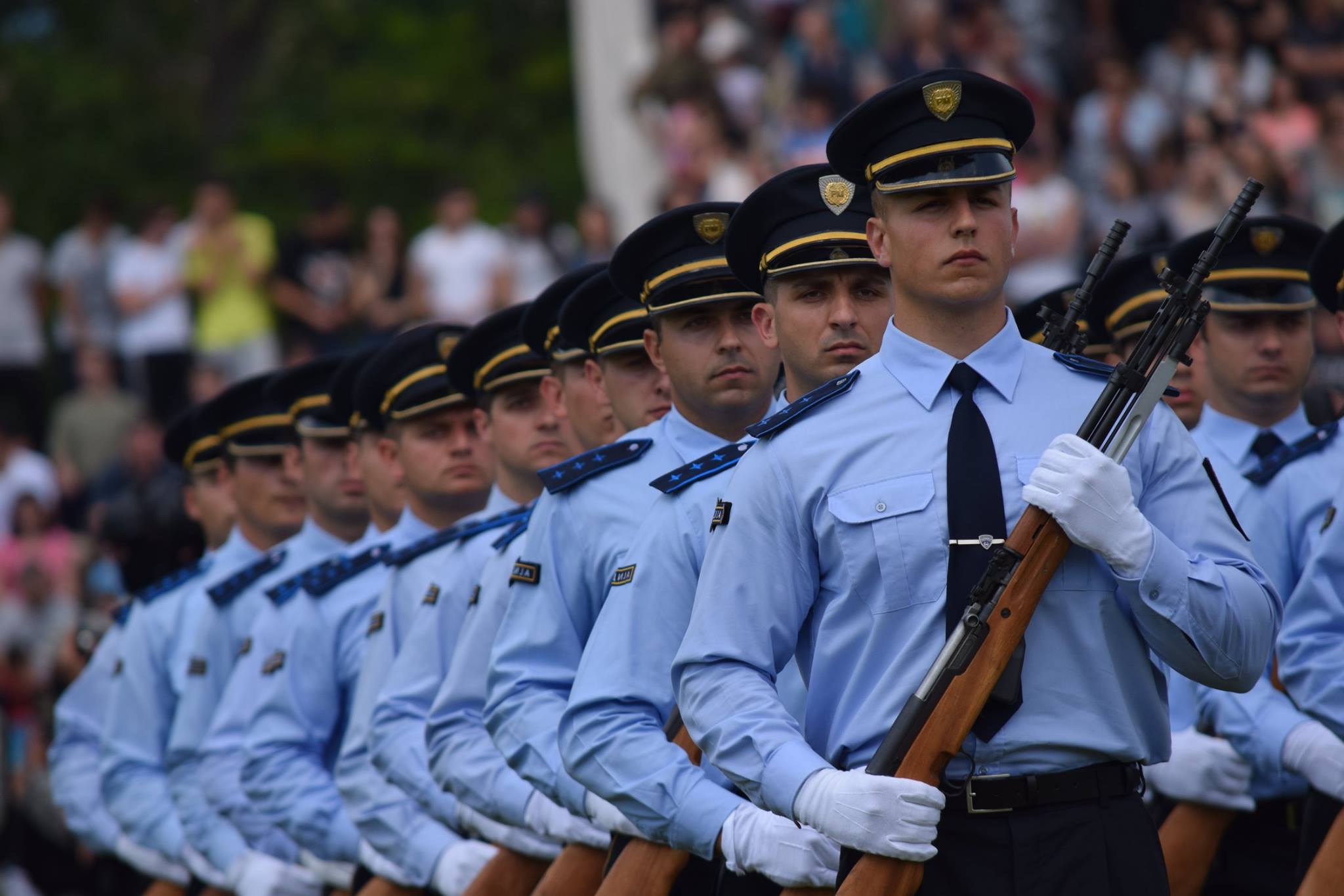Поради тоа , во Планот за јавни набавки на Министерството за внатрешни работи за 2018 година се предвидени вкупно 18 постапки за набавка на униформа и делови на униформа, кои Одделот за општи и заеднички работи ги има започнато согласно процедурите за набавка соодветно на видот на постапките. Изминатиов период беше извршена набавка на комплет униформа и истата веќе е испорачана за припадниците на ЕСЗ за урбани средини, комплет униформа за рурални средини, ремени за сите полицајци, како и комплет униформа за воздухопловниот персонал. Исто така потпишани се договори за набавка на зимски панталони и здолништа во вредност од 13.947.600,00 денари со ДДВ, кожни ракавици за сите припадници на полиција во вредност од 11.112.650,00 денари со ДДВ, како и наменски ракавици за сообраќајна полиција кои ќе бидат испорачани до крај на месец октомври во вредност од 552.851,80 денари со ДДВ. Постапките за набавка на високи специјални чизми со планирана вредност од 30.000.000 денари без ДДВ и џемпери за припадници на МВР со планирана вредност од 10.000.000 денари без ДДВ, моментално се во фаза на евалуација и доколку биде извршен избор ќе се склучат договори за испорака на 7.000 пара чизми и 7.000 парчиња џемпери до крајот на годината. Постапките за набавка на виндјакни со планирана вредност од 45.000.000 денари без ДДВ, вратоврски-3.000.000 ден; кошули со долги и кратки ракави- 1.200.000 ден; маици со кратки ракави- 4.000.000 ден и “БК“ капи летни и зимски – 8.000.000 ден. (по 7.000 пара/парчиња од секој вид летни и зимски, потребна количина за сите припадници на полицијата) беа објавени и поништени бидејќи немаше ниту една понуда која во целост ги исполнуваше барањата од Правилникот за составот, квалитетот и кројот на униформата и ознаките на униформата на полицијата (“Службен весник на РМ“, бр.171 од 09.09.2016). Истовремено, во тек е постапката за набавка на летни, зимски и свечени чевли (вкупно 21.000 пара) со вкупна планирана вредност од 21.000.000 ден.; опасачи со вкупна планирана вредност од 17.500.000 ден. Планирани се и набавки на теренска униформа со вкупна вредност од 42.000.000 за 7.000 комплети (кошула, панталони, капа), свечена униформаза 3.000.000 ден; набавка на амблеми и ознаки на чинови за 8.000.000 ден., униформа за ЕБР и ПЕП во вредност од 136.000.000 денари и работно заштитна облека за работниците во специјални служби во вредност од 30.000.000 денари. Со цел задоволување на итните потреби од основна униформа на 1.200 нововработени припадници на полиција кои поради недостиг од униформа ја користат работната униформа од обуките, во итна постапка набавени се и испорачани по 1.200 пара/парчиња маици со кратки ракави, кошули, кратки јакни, вратоврски, и во секој момент се чека испорака на чевли и опасачи, по што истата ќе биде поделена на нововработените полицајци. Вредноста на оваа набавка изнесува 14.000.000 денари со ДДВ.