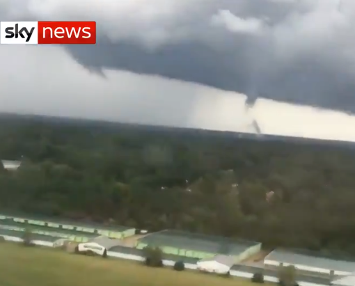 Инаку видеото е направено при слетувањето на патнички авион на аеродромот „Ричмонд“ при што може да се види и формирањето на „левакот“ на торнадото.