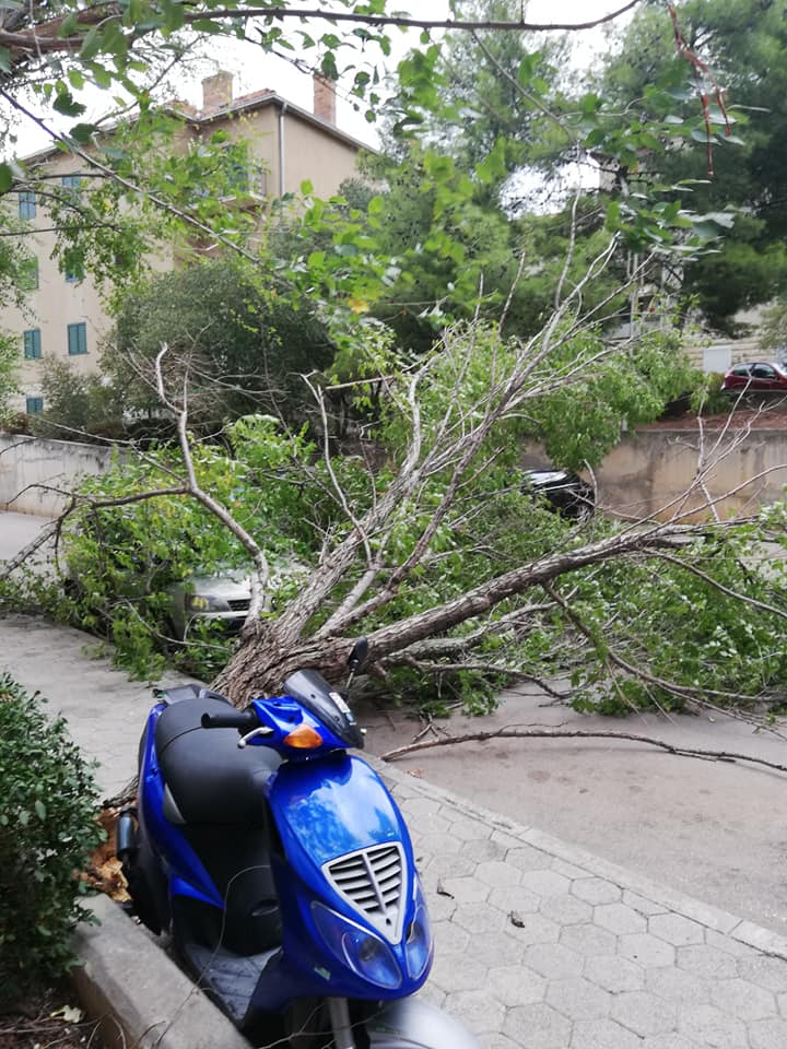Бурата крши гранки и корне дрвја. Паднати дрвја има по цела должина на Далмација.