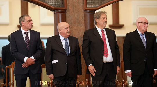 На врачувањето на државната награда „11 Октомври“ во Собранието присуствуваа премиерот Зоран Заев, поранешниот претседател на Собранието, Стојан Андов, пратеници, академици…