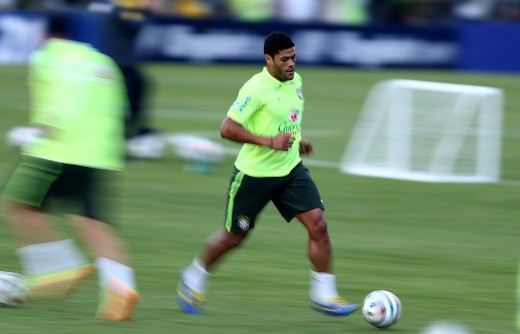epa04233025 Brazilian soccer player Hulk controls a ball during a Brazil’s National Soccer team training session in Teresopolis, Brasil, 30 May 2014. Brazil is getting ready for World Soccer Cup Brazil 2014. EPA/Marcelo Sayгo
