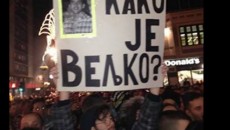 Момчето кое го држеше транспарентот со прашањето „Како е Вељко?“ на дочекот на Старата нова година во Ниш на...