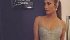 На црвен тепих во Лос Анџелес се појави во сребрен светкав фустан, допирајќи го заобленото стомаче. 50-годишната...