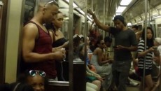Членовите на екипата на бродвејскиот мјузикл „Кралот на лавовите“ влегле во еден воз на подземната железница...