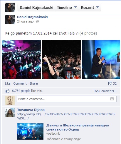 Ќе го паметам 17.01.2014 година цел живот. Фала ви – напиша Даниел Кајмакоски на својата фејсбук фанстраница по...