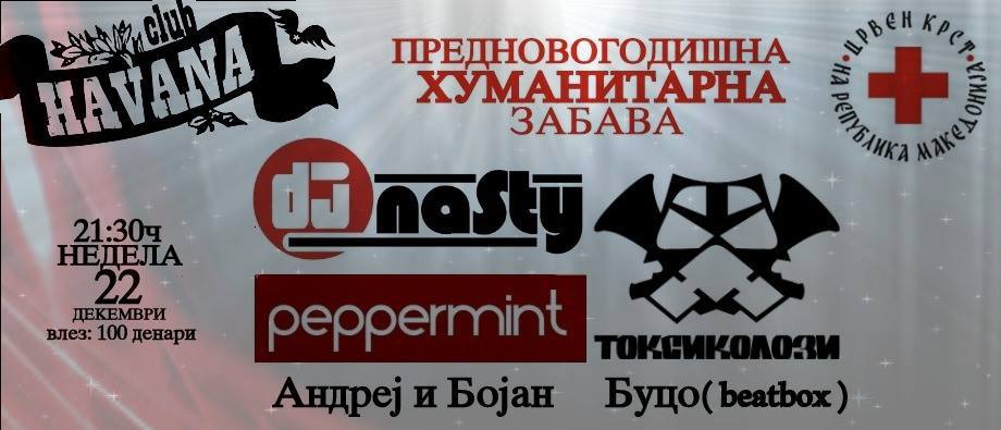 Забава со Пеперминт, Токсиколози во недела, 22 декември во клуб Хавана…Во рамките на ПХВ програмата ( промоција...