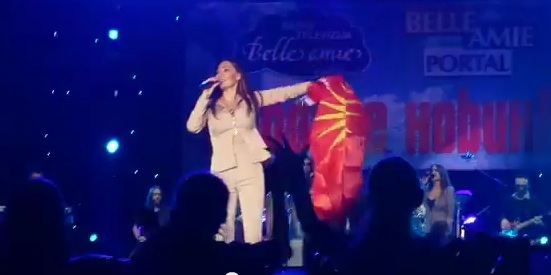 Српската фолк-ѕвезда Цеца Ражњатовиќ на последниот концерт што го одржа викендов во Ниш го развеа и македонското...