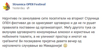 Организаторите на фестивалот Струмица опен на фан страната на фејсбук испрати апел до сите посетители да ги почитуваат...