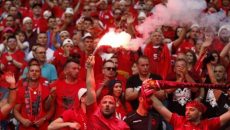 Еден навивач на фудбалската репрезентација на Албанија, успеал во намерата да внесе пиротехнички факел на стадионот...