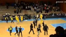 Натпреварот од 8.коло во АБА лигата меѓу Левски и Партизан е прекинат во моментов поради општиот хаос кој го направија...